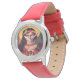 Uhr, Kinderuhr aus Edelstahl mit rosa Lederarmband