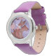 Uhr, Kinderuhr aus Edelstahluhr mit lila Lederarmband