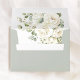 Diese salbeigrüne und weiße florale Hochzeitskarte enthält sanfte Wasserfarbenrosen und luftige botanische Grüntöne, die für elegante und moderne klassische Empfänge konzipiert sind.