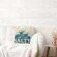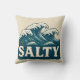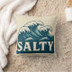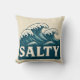 Giant whitecap waves roll toward the beach in this retro style coastal graphic. Cream vintage SALTY text makes a bold contrast against the teal blue ocean. Made for beach bums, surfers, sun seekers and anyone living on island time. This white sand throw pillow is the perfect addition to your beach house decor. | Matching throw blanket available in store.