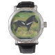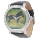 Uhr, Vintage Männeruhr mit schwarzem Lederarmband
