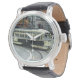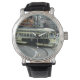 Uhr, Vintage Männeruhr mit schwarzem Lederarmband