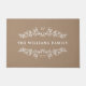 Sandfarbene Türmatte mit Ihrem Namen, gerahmt von spiegelnden Halbwüsten von Blätter und Beeren. Fügen Sie Ihren ersten und das Jahr, in dem Ihre Familie in einem eleganten weißen Schriftart gegründet wurde, hinzu.