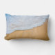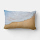 Kissen mit einem Foto eines goldbraunen Sandstrandes mit weißer, schäumender Brandung.