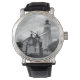 Uhr, Vintage Männeruhr mit schwarzem Lederarmband