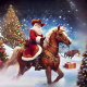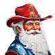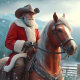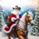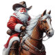 festlichelustigewestern themacowboyhutrustikalcowboysanta reiten ein pferdgoldenes pferdsanta claus
