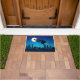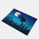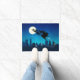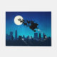 Santa's Sleigh Illustration: Eine nächtliche Fahrt über die Skyline einer Stadt mit dem Nachthimmel und dem hellen Mond und den Sternen im Hintergrund.