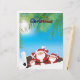 Niedliche Santas auf der Suche nach einem warmen und weißen Weihnachtsfest.