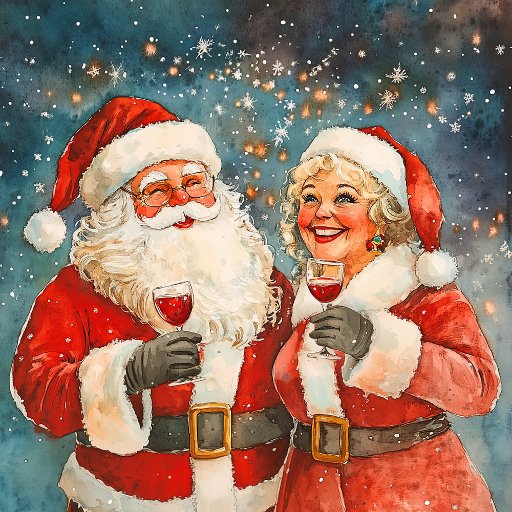Der Weihnachtsmann got einfach von der Lieferung von Geschenken in der ganzen Welt zurück und entspannt sich mit seiner Frau mit einem kleinen Weihnachtsglas. Sie wünschen Ihnen ein "frohes Weihnachtsfest" wie wir auch! Dies ist ein niedliches, lustiges Vintages Aquarellbild, das Ihnen während der Yuletide Saison Spaß macht. Auf der Innenseite dieser gefalteten Ferienkarte werden Empfindungen vorgeschlagen, die Sie behalten oder ändern können. Auf der Vorderseite und auf der Seite sind Beispiel "von" Namen und Jahr. Stellen Sie sicher, dass Sie diese nach Ihren eigenen Vorstellungen bearbeiten.