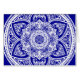 Diese weiße Mandala sitzt auf einem hellen, tiefblauen Hintergrund. Die Farben sind intelligent und introspektiv. Teil der Sammlung Bardh Mandala.
