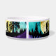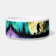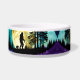 Sasquatch auf dem Berg mit Vollmond hinter ihm Farbige Lila Bäume, aquamarines, gelbes Gold, Marineblau und Sterne AI Art by minx267