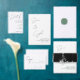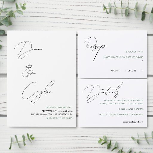 Ein sauberes, luftiges Design in einem handgeschriebenen Stil Schriftart über dem Foto des Paares.