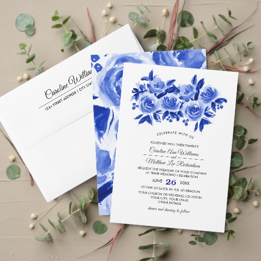 Save The Date. Royal Blue Floral Wedding Cards Save The Date