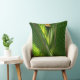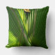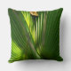 Ein gefallenes Blatt, trocken und braun, Erholungen auf einer Sägepalmenfront im Wald. Das Originalfoto von ZoeSPEAK auf diesem quadratischen Throw Kissen zeigt das akkordeonähnliche Muster der Palmfront, das sich wie ein natürlicher Fan öffnet. Die gelben Grün-Farbtöne wirken schön in der Sonne und im Schatten.