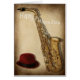 Saxophon- und HutVatertagskarte. Links freier Raum nach innen für Ihre eigene Mitteilung.