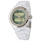 Eine wunderbare Damenuhr mit weißem Armband und grün-weiß-kariertem Ziffernblatt. Trägt sich ganz fabelhaft. Exzellenter Druck, sehr klare Farben. Schönes Design.