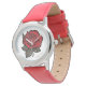Uhr, Kinderuhr aus Edelstahl mit rosa Lederarmband