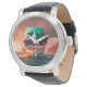 Uhr, Vintage Männeruhr mit schwarzem Lederarmband