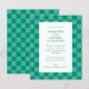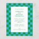 Niedlicher Spaß Moderne Checkerboard Geometric 21. Geburtstagsfeier Party Einladung in Blau und Grün