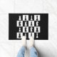 Schwarze Türmatte mit elegantem, klassisch schwarz-weißem Schachfigurendesign.