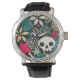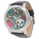 Schädel in Blume Armbanduhr