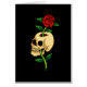 Ein klassisches Vintages Tattoografiebild eines Schädels mit dem Stamm einer rote Rose, der durch ihn wächst.