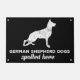 Schäferhund-Hunde verdarben hier, entzückendes GSD Silhouettebild und Text in beunruhigter Kreideart auf einem schwarzen Hintergrund.