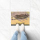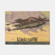 Leicht zu personalisieren diese Begrüßungsmatte mit Ihrem eigenen Text! Vintage Darstellung Science Fiction Reise und Transport Design mit einem großen Flugzeug über den Ozean fliegen mit anderen Flugzeugen im Himmel. Dieses Wasserflugzeug sieht aus wie ein großes futuristisches Kreuzfahrtschiff oder ein Boot mit Flügeln. Ein klassischer 50er Retro-Comic Buch sci fi Design der Zukunft.