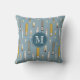 Dieses Seesaugen-Kissen kann mit einer beliebigen Hintergrundfarbe und variabler Größe auf blauem Untergrund mit individueller Monogramm auf einem dunkelblauen Anhänger angepasst werden - das Muster umfasst 3 Frachtschiffe, ein Segelboot, ein Kreuzfahrtschiff, ein Paddle-Rad-Tour, ein Yacht und ein vertikal orientiertes Fischerboot - Auf dem Fluss © katz_d Januar 2019