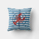 Helles blaues und weißes horizontales Musterentwurfs-Wurfskissen kennzeichnet ein Seethema mit einem Schiffskompaß und -hummer auf jeder Seite.