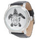 Uhr, Vintage Männeruhr mit schwarzem Lederarmband
