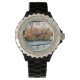 Uhr, Vintage Männeruhr mit schwarzem Lederarmband