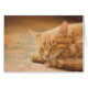 Foto einer friedlich schlafenden orangefarbenen Tabbattacke auf einem warmen Teppich