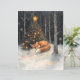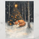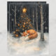 Die Kunst des Scrapbook-Buches mit einem bezaubernden Schlaffuchs vor einem Weihnachtsbaum im Wald.