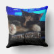 Das Originalwerk von ZoeSPEAK auf diesem Throw Kissen enthält ein Originalfoto einer Katze, die vor einem Fernseher schläft. Die Katze ist ein Kalico, mit weißen Pfoten, die auf die Kamera zukommen. Ein Programm zum Thema Finanzen ist im Fernsehen zu sehen, mit einer leuchtend blauen Grafik mit den Worten "HAUPTSTADT FINANZIERUNG". Unter der Katze, die ihr Interesse an finanziellen Angelegenheiten zeigt, stehen die Worte "VENTURE CATIPALIST", in einem Text mit einem Katzenfellmuster und einem blauen Glühen dahinter, wie das blaue Licht hinter dem Fell der Katze an seinen Rändern.