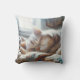 Eine flauschige Katze schläft friedlich auf einem Flickwerk in der Nähe eines Fensters, das in der warmen Sonne liegt