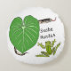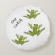 Ein Kissen mit einem einzigartigen Schlange- und Froschdruck. Es ist mit einer animierten Schlangenjagd unter einem großen grünen Blatt ausgestattet. Die Schlange hat schwarze, unregelmäßige Flecken, die dem Design Einzigartigkeit und einen mystischen Power verleihen. Das Kopfkissen enthält den Text "Schlangenjäger". Rückseite des Kissens mit Fröschen und Text: "versuchen Sie fangen".