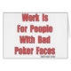 Arbeit ist für Menschen mit schlechten Poker Gesichter in einer Spielkartenstruktur.