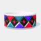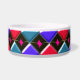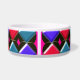 Diese phantastische Schüssel hat ein abstraktes Muster mit roten, hellblauen und dunkelblauen Diamanten. Jede Zeile wird durch eine Reihe schwarzer Diamanten getrennt. Jeder der schwarzen Diamanten hat ein Loch in der Mitte. Das obere links von jedem Single Diamant sieht aus, als ob es glänzend ist. Hier ist das lustige Stück, Sie können dieses Loch mit einer Auswahl von über 200 Farben füllen, um ein einzigartiges Design zu machen. Hier wurden die Löcher mit einer durchstechenden, leuchtend rosa Farbe als Beispiel gefüllt. Um Ihre Farbe auszuwählen und den Effekt auf das Design zu sehen, klicken Sie einfach auf den Button "Anpassen", gehen Sie in den Farbbereich und klicken Sie auf den Hintergrund und wählen Sie dann die Farbe aus, die Sie in das Design einfügen möchten. Sie können so viele Farben wie Sie möchten ausprobieren, bis Sie die für Sie geeignete finden.