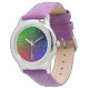 Eine farbenfrohe Armbanduhr mit farbenfrohen Gesichtern und Ziffern, die mit Lila Gurten kombiniert werden, und Sie haben ein tolles Geschenk für junge Mädchen. Passen Sie die Farbe des Gurtes für Jungen an.