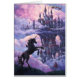 Kunstdrucke, Plakate, Accessoires und Geschenke von Unicorn Castle zeigen ein originelles Fantasy-Gemälde von Traci Van Wagoner eines schwarzen Einhorns, das auf einem grasbewachsenen Hügel über einer weißen Burg hoch im Himmel aufragt, umgeben von farbenfrohen rosa und lila Wolken. Dieses wunderschöne und skurrile Schloss in der Wolkenwelt ist perfekt für Fantasy-Liebhaber, Burgliebhaber, Einhornliebhaber, Magier-Liebhaber und alle, die die fantastische Liebe.