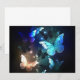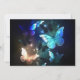 Fantastisch, leuchtend, blau und gelb, Nachtschmetterling auf dunklem Hintergrund.