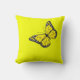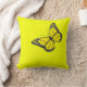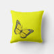 Dieses Kissen kennzeichnet einen Singleschmetterling auf einem gelben Hintergrund und anderen einem Entwurf der Eigenschaften ein wenig auf jeder Seite.