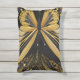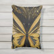 Heller, goldgelber Schmetterling auf schwarzem Hintergrund mit stilvollen Wirbel verziertes Design.