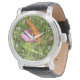 Uhr, Vintage Männeruhr mit schwarzem Lederarmband