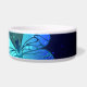 Fantastisch, leuchtend, blau und gelb, Nachtschmetterling auf dunklem Hintergrund.