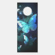 Fantastisch, leuchtend, blau und gelb, Nachtschmetterling auf dunklem Hintergrund.