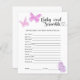 Lila Lila und rosa Butterfly Küsse und Baby wünscht Baby Dusche Party. Butterfly Babyduschkarten für ein Mädchen. Matching-Elemente verfügbar. Antworten: KREISE, KREUZEN, SCHNULLER, FLASCHE, NACHTLICHT, LULLABY, STROLLER, EPIDURAL, BURP, HOCHSTUHL, DIAPER BAG, SCHWIMMBAD