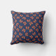 Dieses stilvolle Kissen ist mit fliegenden Schmetterlingen in Rosa und Orange mit schwarzen Körpern geschmückt. Die marineblaue Hintergrundfarbe ist anpassbar.