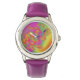 Uhr, Kinderuhr aus Edelstahluhr mit lila Lederarmband